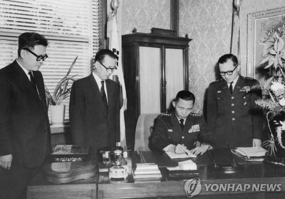 | ▲ '5차 개헌' 헌법개정안에 서명하는 박정희 1962.12.26 (사진=연합뉴스) |