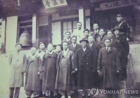 | ▲ 앞줄 맨 오른쪽이 반민특위 위원장 김상덕 선생, 앞줄 오른쪽에서 두번째가 김구 선생, 셋째 줄 오른쪽에서 두번째가 장준하 선생 (사진=연합뉴스) |