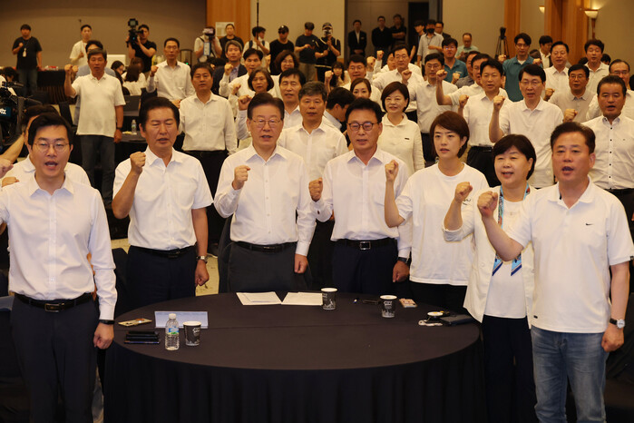 | ▲민주당 워크샵 마무리 모습 (사진=연합뉴스) |