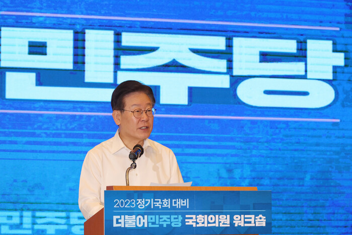 | ▲워크샵 마무리발언하는 이재명 대표 (사진=연합뉴스) |