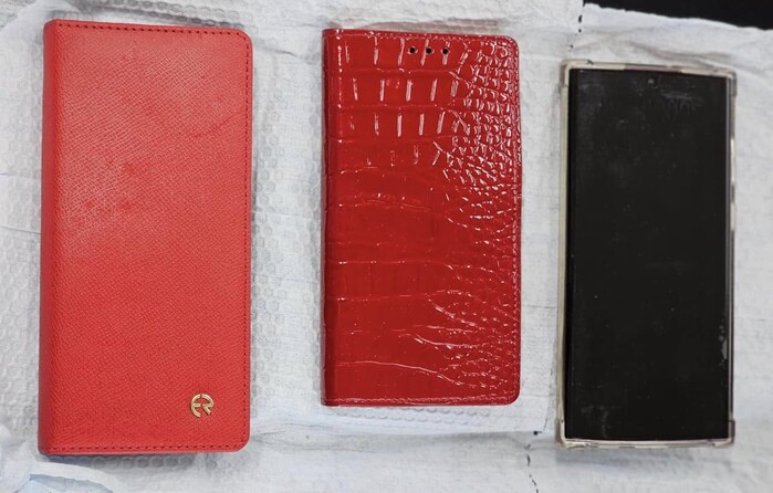 휴대전화 3개가 나란히 놓인 채 찍힌 사진과 특이한 모양의 USB 1개가 촬영된 사진이다.