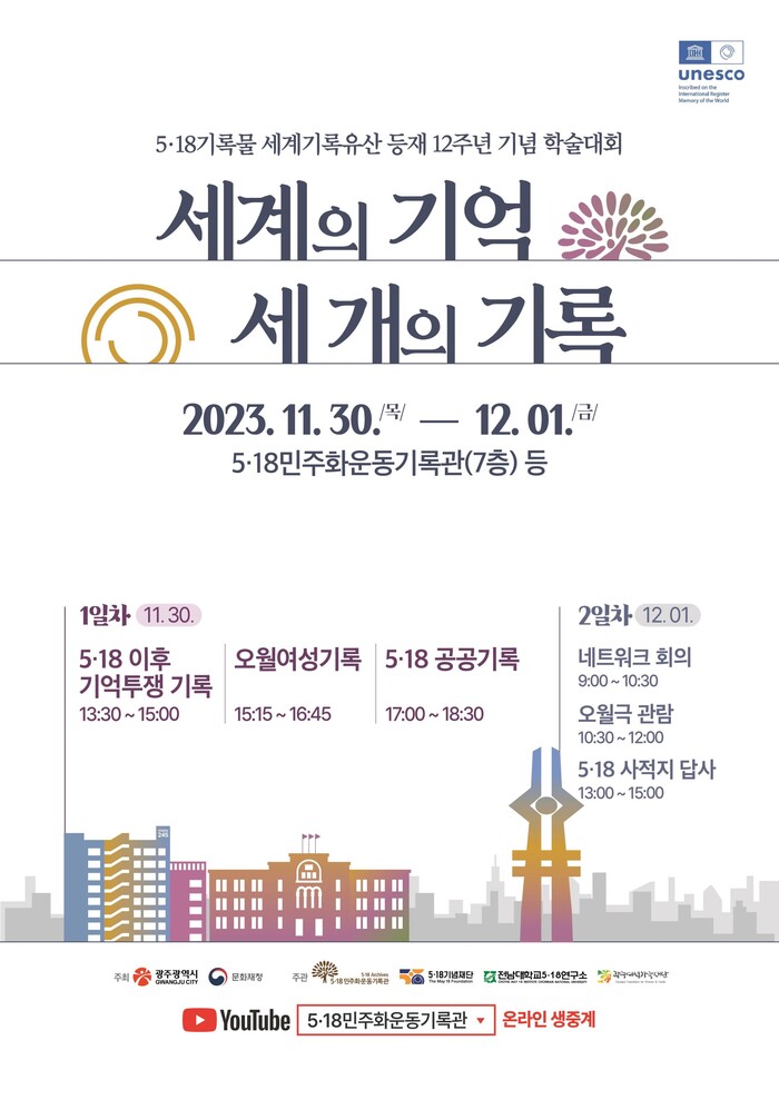 5·18 기록물 세계기록유산 등재 12주년을 기념하는 학술대회가 오는 30일부터 이틀간 5·18 민주화운동 기록관 대강당에서 열린다.