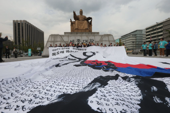 | ▲ 광화문광장 세종대왕상 앞, 대한민국 제헌헌법 전문 5만 글자가 새겨진 대형 지도 (사진=연합뉴스) |