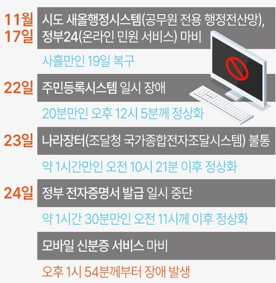 | ▲최근 행망 먹통 사태 발생 일지 (그래픽=연합뉴스) |