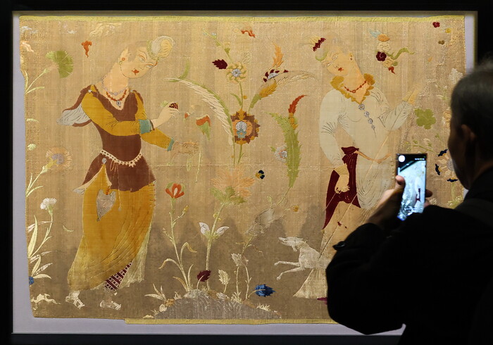 | ▲ 왕좌용 카펫. '이슬람 미술, 찬란한 빛의 여정' 전시가 열린 21일 서울 국립중앙박물관 상설전시관에서 취재진 및 관계자들이 전시물을 살펴보고 있다. 이 전시는 2026년 10월 11일까지 열린다. 2025.11.21 (사진=연합뉴스) |