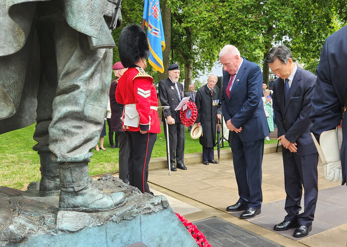 | ▲영국에서 열린 6·25전쟁 정전협정 체결 71주년 기념식. 버넌 코커 영국 국방장관과 윤여철 주영대사 (사진=연합뉴스) |