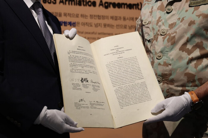 1950년 6월 25일 시작된 6·25전쟁이, 1953년 7월 27일 3년여 만에 '정전협정'을 맺었다. 이 협정문에는 유엔군(총사령관 마크 클라크)과 조선인민군(최고사령관 김일성), 중국 인민지원군(사령원 펑더화이)이 서명했지만 대한민국 대통령 이승만의 서명은 없다.