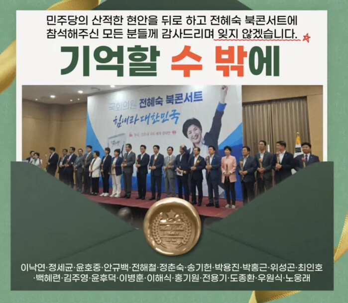 이번 북콘서트는 당선은 커녕, 지역 경선도 통과하기 어려울까를 걱정하는 '민주당 고인물의 불안감과 조급함'을 보여주는 확실한 증거다.