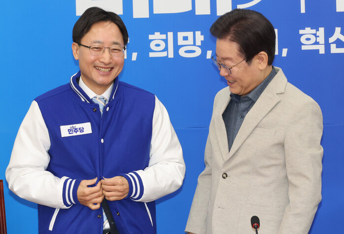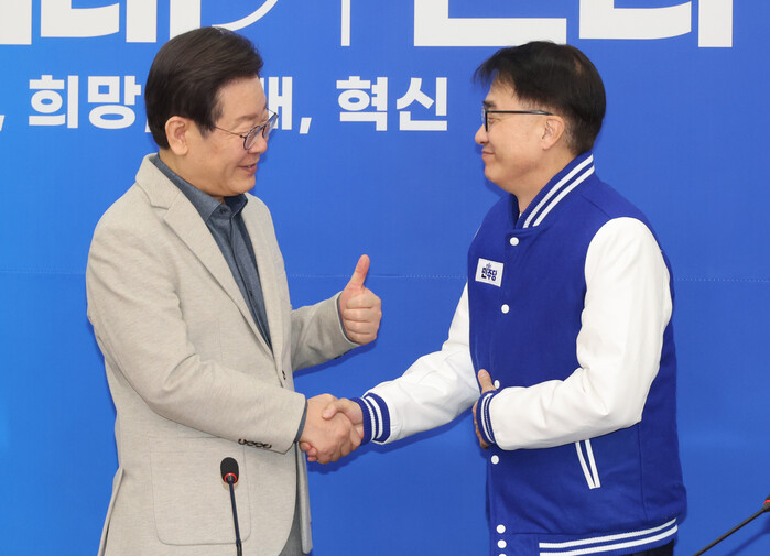 | ▲ 왼쪽부터 임광현 전 국세청 차장, 손명수 전 국토교통부 차관, 이재명 대표, 김준환 전 국가정보원 차장(사진=연합뉴스) |