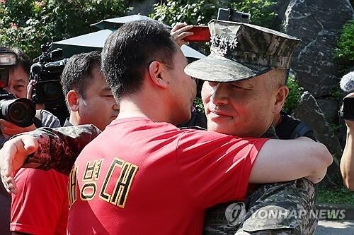 | ▲동기들과 인사 나누는 박 전 단장 (사진=연합뉴스) |