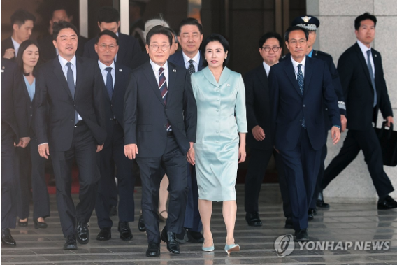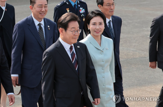 | ▲ 주요 7개국(G7) 정상회의에 참석하는 이재명 대통령이 16일 성남 서울공항에서 김혜경 여사와 함께 공군 1호기로 향하고 있다. 2025.6.16 (사진=연합뉴스) |