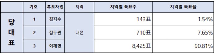| ▲대전 당대표 후보 득표 화면 캡쳐 |