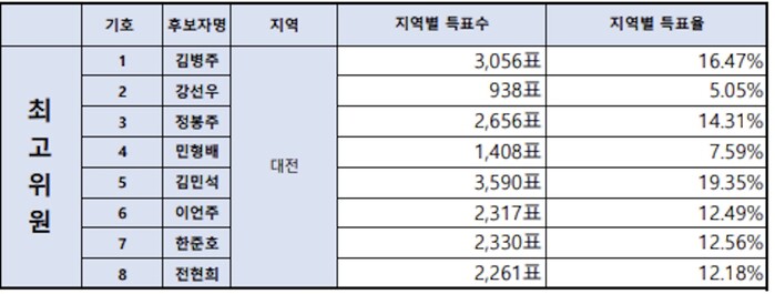 | ▲대전 최고위원 후보 득표 화면 캡쳐 |