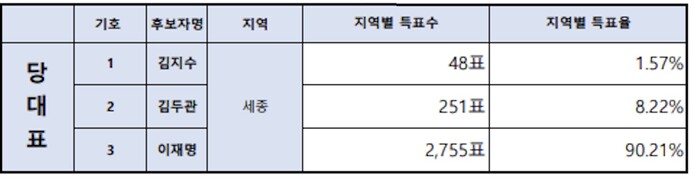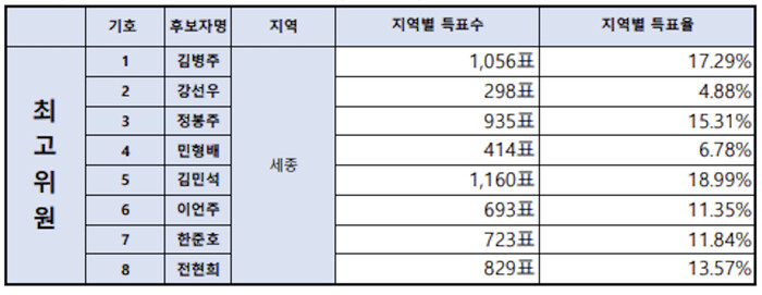 | ▲세종 당대표 후보 득표 화면 캡쳐 |
