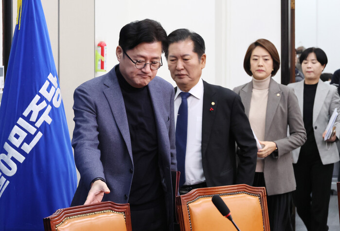 임오경 원내대변인은 "대통령 가족과 관련해 대통령이 거부권을 남발하면 우리가 특검을 손도 못 대는 상황이 된다"며 "오늘은 이와 관련한 다양한 의견을 수렴하는 자리였다"고 전했다.