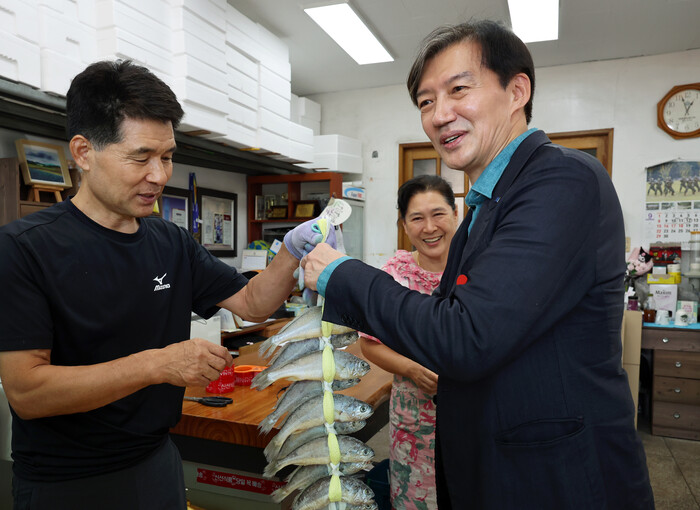 | ▲영광 굴비 든 조국 대표 (사진=연합뉴스) |
