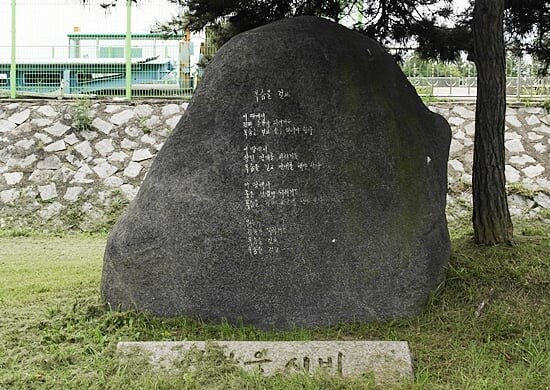오송회 사건의 이광웅 선생님은 시인이셨습니다. 돌아가신 뒤 금강 하구 언저리에 시비 하나가 세워졌습니다. 생전의 선생님 모습처럼 수줍게 서있습니다. 그 시비에 새겨져 있는 시가 ‘목숨을 걸고’입니다.