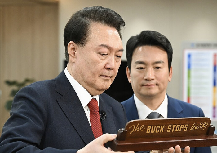 “The Buck Stops Here! 「대한민국 대통령 윤석열」이라는 명패가 놓여 있어야 집무실 책상 위에 놓여 있는 명패다.