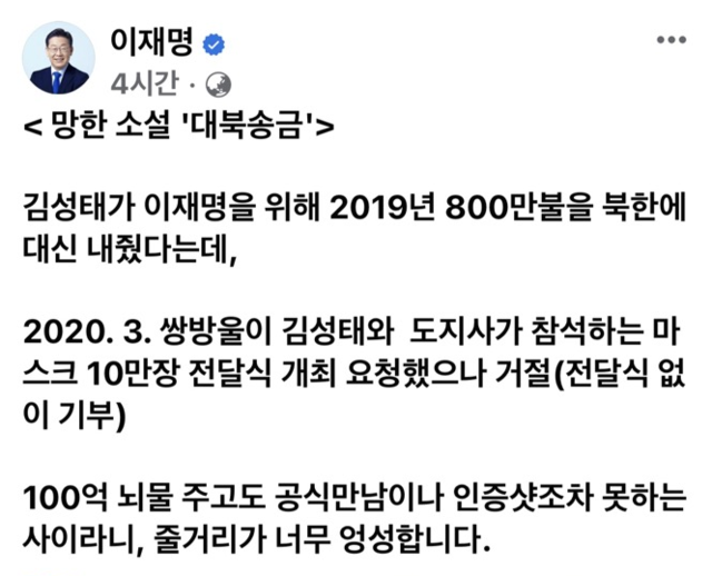 | ▲이재명 대표의 트위터 (화면 캡쳐=이재명 트위터) |