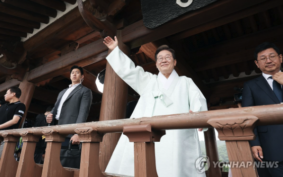 | ▲ 2025.5.16 전북 전주 청년 국악인과의 간담회를 마친 후 하트 인사하는 이재명 후보 (사진=연합뉴스) |