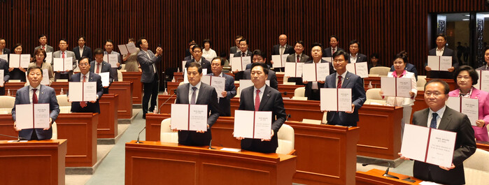 | ▲불체포 특권 포기 서약식하는 국민의힘 의원들 (사진=연합뉴스) |