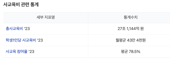 | ▲ 통계청, 초·중·고사교육비조사 (출처=KOSIS) |