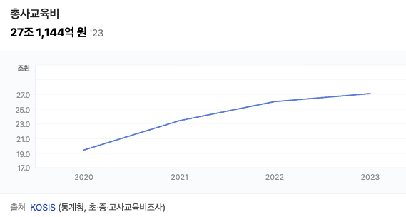 ▲ 2023년 총사교육비, 2022년 대비 1조 1천 억원 증가 (출처=KOSIS) |