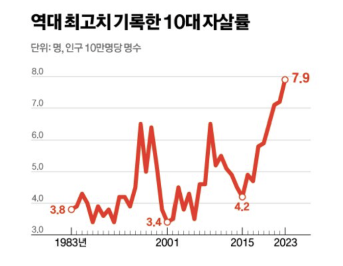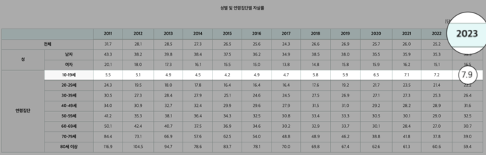 | ▲ 10대 자살률 추이 (출처=통계청) |
