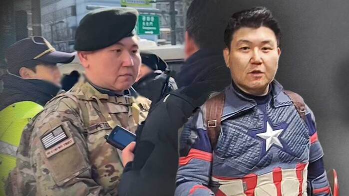 | ▲ 윤석열 지지하는 캡틴 아메리카 복장의 폭도 안 모씨 (사진=연합뉴스) |