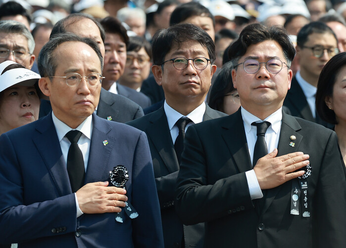 | ▲현충일 추념식 참석한 양당 원내대표 (사진=연합뉴스) |