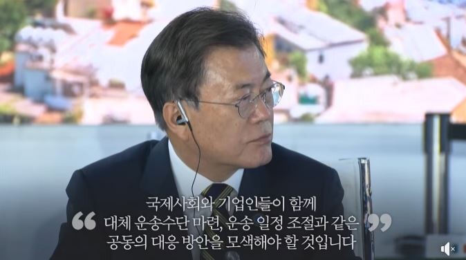 특히 “공급망과 물류는 한 나라의 역량만으로는 해결하기 힘든 과제”라며 “국제사회와 기업인들이 함께 대체 운송수단 마련, 운송 일정 조절과 같은 공동 대응 방안을 모색하고, 물류 관리 체계를 디지털화하고 관련 데이터와 정보를 공유해 나가길 기대한다”고 말했다.