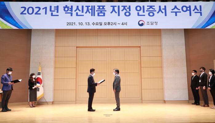 조달청(청장 김정우)은 13일 정부대전청사에서 신규 지정된 41개 혁신제품에 대한 지정 인증서 수여식을 개최했다.