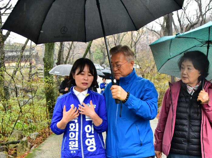 앞서 문 전 대통령은 지난 1일 부산 사상구 낙동강변을 찾아 배재정 후보 지원에 나서기도 했다. 사상은 문 전 대통령이 19대 총선에서 당선된 지역구로 정치적 의미가 있다.