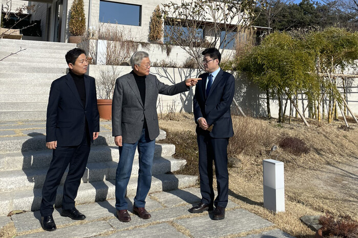홍익표 더불어민주당 원내대표는 12일 경남 양산 평산마을을 찾아 문 전 대통령 내외의 건강을 기원하며 "국가적으로 어려운 시기에 국가 원로로서 역할을 해달라"고 말했다.