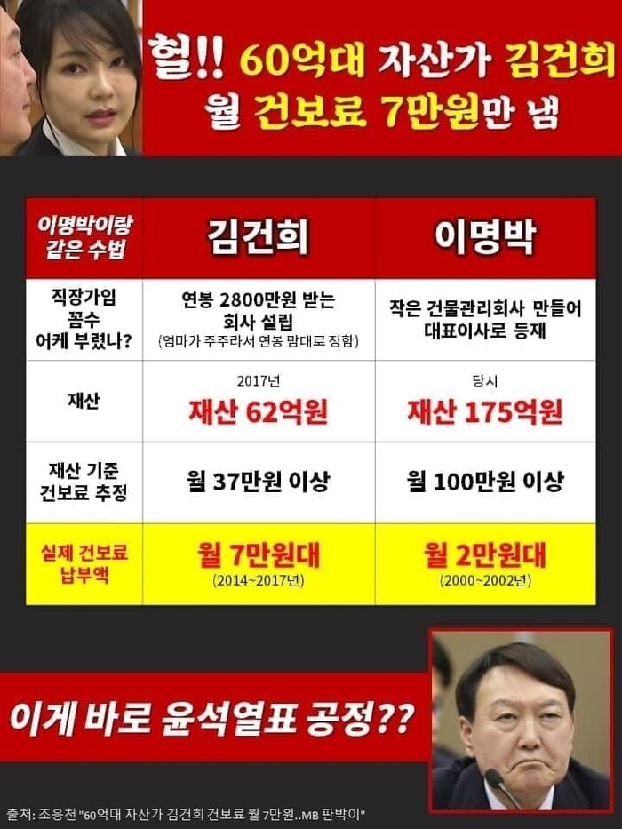 윤석열 후보에게 묻습니다. 과연 김건희 씨의 월 7만원 건강보험료는 공정하다고 생각하십니까?