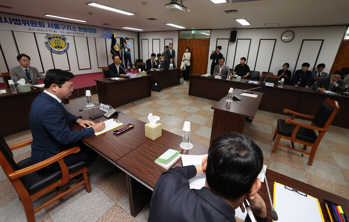 국회 법제사법위원회는 19일 '모해위증교사 의혹'을 이유로 야당이 탄핵을 추진하는 김영철 서울북부지검 차장검사 사건과 관련, 의혹의 핵심 인물인 장시호 씨가 수감됐던 서울구치소에서 현장 검증을 벌였다.