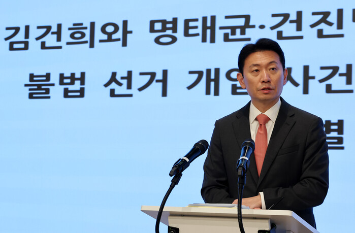 | ▲ 민중기 특별검사팀의 박상진 특검보가 27일 서울 종로구 특검 사무실에서 양평군 공무원 사망 감찰 결과를 발표하고 있다. 2025.11.27 (사진=연합뉴스) |