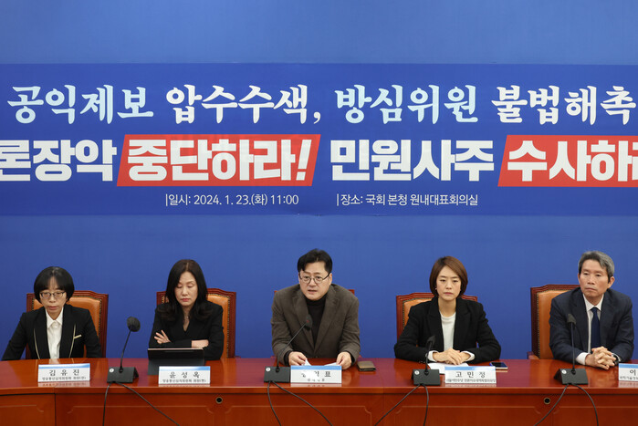 홍 원내대표는 "권위주의 시대, 군사독재정권 시절에도 이렇게까지 무지막지하게 방송을 장악하진 않았다"며 "윤 대통령은 방송장악 시도를 즉각 중단하고 류희림 방통위원장을 해촉해야 한다"고 강조했다.