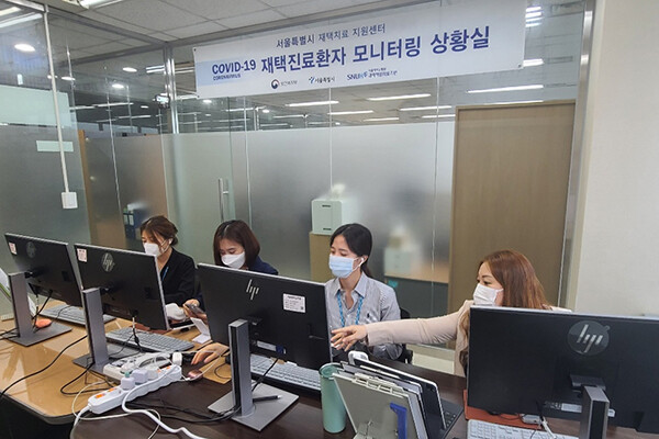 | ▲ 서울시·서울대학교병원 재택치료지원센터에서 상황실 직원들이 재택치료환자 모니터링 업무를 하고 있다, 연합뉴스 |