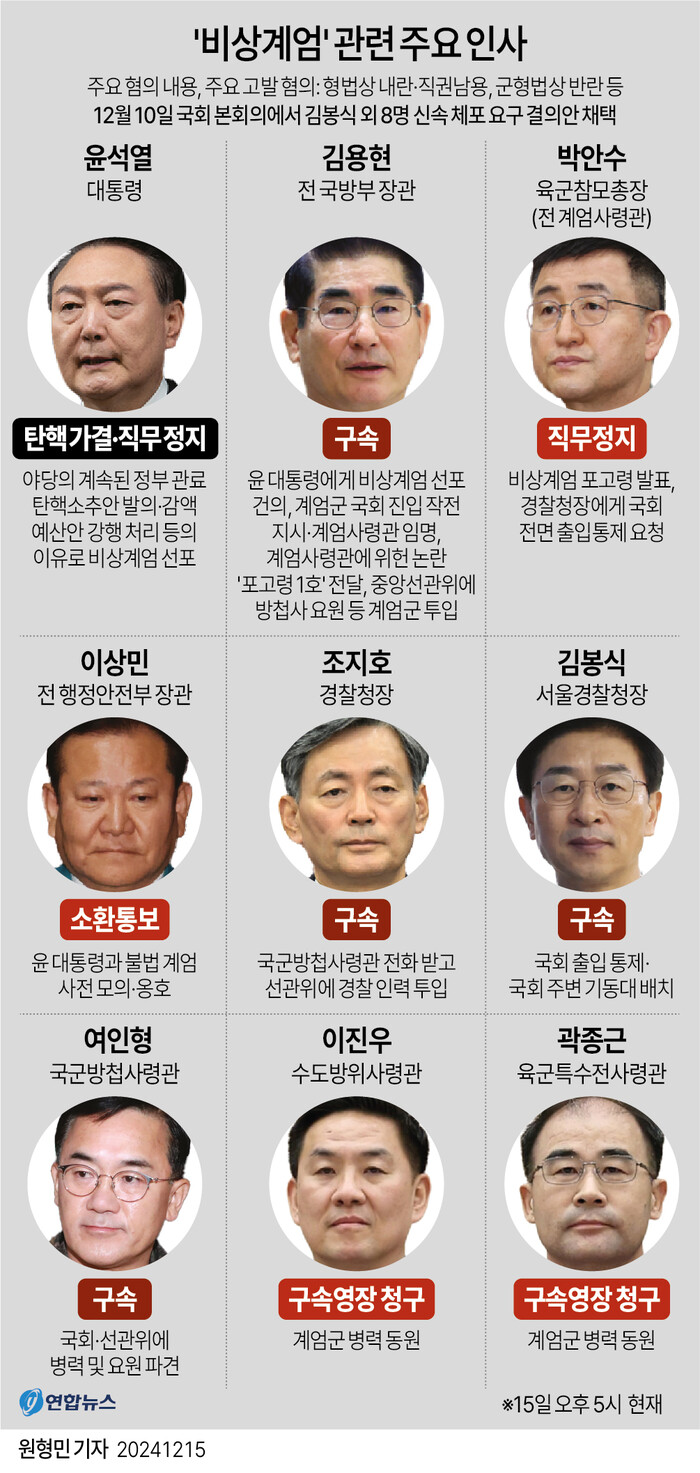 이 사령관과 함께 '계엄군 3인방'으로 꼽히며 앞서 전날 구속영장이 청구된 곽종근 사령관 역시 계엄 선포일보다 앞선 지난 1일 사전에 알고 있었다고 시인한 바 있다.