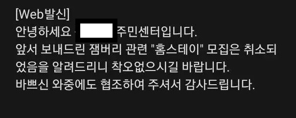 그러나 이 문자를 받은 일부 주민들이 '주먹구구식 운영'이냐며 반발의 목소리가 높아지자 부랴부랴 없던 일로 해 달라는 취소 문자가 발송됐다.