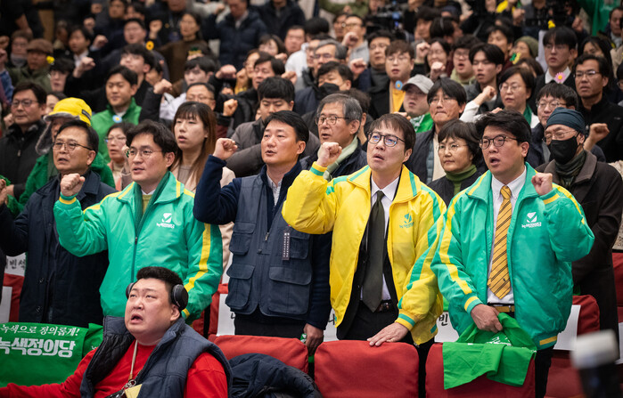 녹색정의당의 다른 관계자는 "위성정당은 안 된다는 입장이 분명하지만, 윤석열 정부 심판을 위한 연대도 중요한 가치"라며 "지도부가 현실적 문제를 두고 고심할 것으로 보인다"고 말했다.