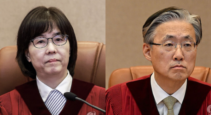 | ▲ 이미선 재판관과 김형두 재판관 (사진=연합뉴스, 편집=시사타파뉴스) |