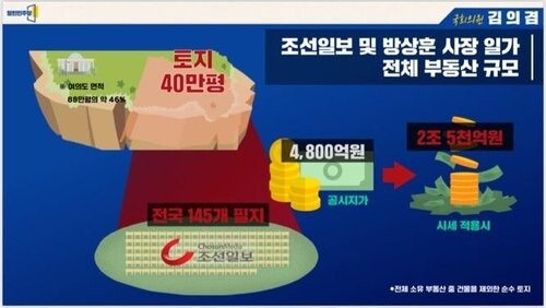 -조선일보와 방상훈 사장 일가,2조5천억 원에 달하는 부동산(토지) 보유.