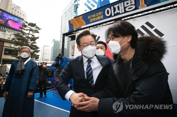 | ▲ 지난 대선, 더불어민주당 이재명 대선후보의 서울집중유세에서 박혁권 배우 2022.3.1 (사진=연합뉴스) |
