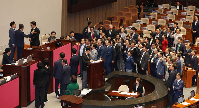 | ▲필리버스터 종료에 항의하는 국민의힘 의원들 (사진=연합뉴스) |