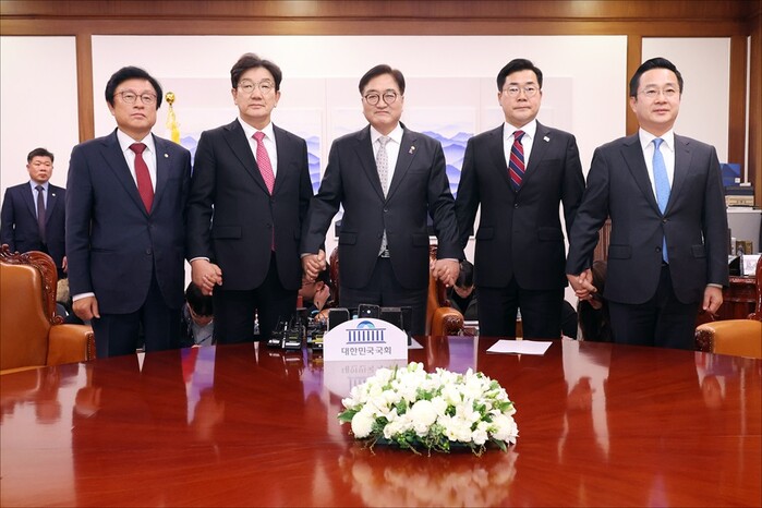 권 원내대표와 박 원내대표는 이날 오후 국회에서 우원식 국회의장 주재 회동을 가졌다.