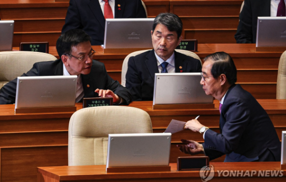 | ▲ 2024.12.10 국회 본회의에서 한덕수 국무총리와 논의중인 최상목 경제부총리 (사진=연합뉴스) |