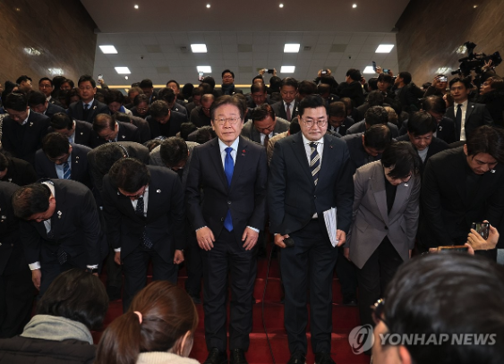 이 대표는 탄핵안 가결 직후 열린 비공개 의원총회에서도 당 소속 의원들을 향해 "승리는 아니다"라며 "책임감 있고 신뢰를 주는 당과 국회의 모습이 중요하다. 분출된 광장 에너지로 분란을 빠르게 수습하고 긍정적인 변화를 이끌어내는 동력으로 삼아야 한다"고 말한 것으로 전해졌다.