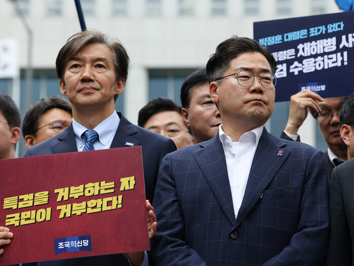 조국 조국혁신당 대표는 "이 문제는 좌우의 문제도, 여야의 문제도 아닌 진실의 문제"라며 "윤 대통령이 또 거부권을 행사하면 그다음에는 국민이 대통령을 거부할 것"이라고 목소리를 높였다.